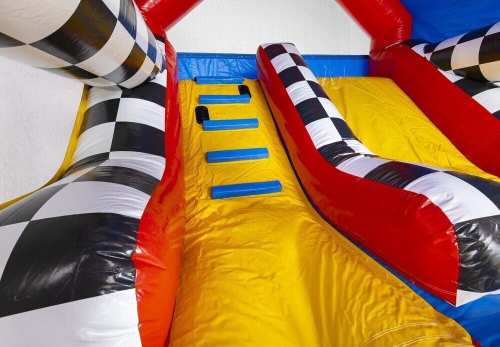 Dit springkussen met glijbaan combineert springen, spelen en glijden op een compacte maar superleuke manier. De speelelementen zorgen voor extra variatie en maken het een topper in je assortiment. Opzetten is eenvoudig: blower aansluiten, vastzetten en je bent klaar voor actie. Natuurlijk wordt het springkussen geleverd met alles wat je nodig hebt van blower tot haringen en handleiding zodat jij snel kunt starten.